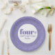 Four Simple Purple 4th Birthday with Name Paper Plate