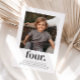 A modern 4th Birthday invitation featuring your own photo and the word 'four.' underneath.