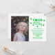 Four times lucky! 4th birthday invitation for a March or St Patrick's Day birthday. Features green shamrock and leprechaun hats. Photo template via Pixabay licensed under CC0 and must be replaced with your own photo