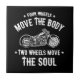 "Four wheels move the body, two wheels move the soul." The spirit of moving free in the open air and sunshine. Black and white, western lettering with an ink bike, on t-shirts, sweats, gift items.