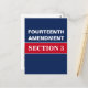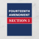 Fourteenth Amendment Section 3. There is a horizontal version with the text on the back, and horizontal and vertical versions where the back is blank (except for the parts necessary to mail the postcard) in the same collection. Remind your Congresspeople, including the ones who helped plan, but failed, to throw away all of your state's votes through abusing the electoral college in 2020, that insurrectionists are disqualified from holding public office. The back of the card contains the text of Section 3 of the 14th Amendment, which reads, "No person shall be a Senator or Representative in Congress, or elector of President and Vice-President, or hold any office, civil or military, under the United States, or under any State, who, having previously taken an oath, as a member of Congress, or as an officer of the United States, or as a member of any State legislature, or as an executive or judicial officer of any State, to support the Constitution of the United States, shall have engaged in insurrection or rebellion against the same, or given aid or comfort to the enemies thereof. But Congress may by a vote of two-thirds of each House, remove such disability." The text underlined in red reads when put together, "No person shall hold any office, civil or military, under the United States who, having previously taken an oath as an officer of the United States to support the Constitution of the United States, shall have engaged in insurrection or rebellion against the same." Remind people that the people responsible for the insurrection, especially its kingpin, Donald Trump, need to be held accountable and are disqualified from public office by reason of the Fourteenth Amendment to the United States Constitution. Trump held the Office of the President, he was in charge of the military, and on his inauguration day, he swore this oath, in front of all of us, "I do solemnly swear that I will faithfully execute the Office of President of the United States, and will to the best of my ability, preserve, protect and defend the Constitution of the United States." Design description: Over the entire space, a blue background. Over the top half, the words, "Fourteenth Amendment." Over the bottom half, a wide stripe in patriotic red, edged on the top and bottom in white, and in the centre of that stripe the words "Section 3" in an all-caps white serif font. Back design is split into two halves. The right half contains the text of the Fourteenth Amendment Section 3, with parts underlined as described above. The right has space for the address and stamps.