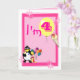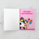 4th birthday card with funny clown, penguin and ice cream and balloons, on a pink background. Easily personalise this design by adding or changing the text.