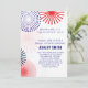 This modern 4th of July bridal shower invitation is illustrated with stylised fireworks. It is perfect for any Independence Day shower, bachelorette, or backyard party.