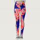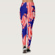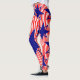 These leggings have a mid-century modern Fourth of July design of red vertical lines with blue stars on a field of white.