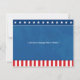 An invitation for your Fourth of July celebration that takes its' inspiration from the American flag. A row of white stars on the top with red and white stripes on the bottom frame your customised information. Add any extra message or directions to your event on the back. Available in matching postage and favours.