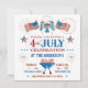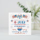 4th of July Party Invitation. Decorated with fun patriotic elements: american flags, eagle, fireworks, bbq grill, american eagle, and stars. Back of card has a star pattern. Click on the blue "customise it" button and add your own text. Original Illustration by pj_design. Happy 4th of July! Need help - email me.