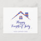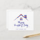 Wish your clients a "Happy Fourth of July" with this customisable postcard featuring an American flag house.
