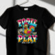 Here’s another funny and whimsical April Fools’ Day t-shirt design featuring a cartoon-style rubber chicken with a surprised expression, bold, playful typography reading "Fowl Play," and colourful confetti. 🐔😂✨