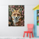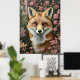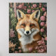 A beautifully detailed fox gazes into the camera, surrounded by vibrant pink spring florals, creating a serene and enchanting woodland scene.