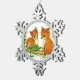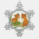 Fox and Bird Enjoy Christmas Snow Snowflake Pewter Christmas Ornament