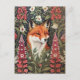 Fox and Foxglove Flowers William Morris Inspired Postcard