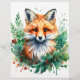 A little red fox peers out from holly branches accented with bright, red berries in this charming watercolor on a holiday stationery. Perfect for anyone who loves foxes, nature, and wildlife.
