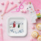 Personalised wonderful Fox And Rabbit winter Christmas Book Illustration is the perfect whimsical holiday paper plate, for winter snacks, dinner, party. Fox and rabbit festive winter joy, featuring fox and rabbit in Christmas sweaters, building snowmen, and tobogganing.