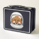 This is a standard metal lunchbox that appears to work just fine. We designed this box ourselves with an uploaded photo and custom text on the front and back. It looks absolutely beautiful except the front of the lunchbox is not centered like it shows in the photo. The print borders don't align with the inset flat part of the box where the preview photo online showed it perfectly centered in there. The back looks nice and centered though.