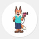 Fox as Hairdresser with Hairdryer Classic Round Sticker
