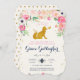 An elegant and sweet gold foiled fox and butterfly surrounded by a frame of garden woodland flowers and gold glitter