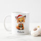 Bring some playful spirit to the season with this adorable, customizable mug! It features a mischievous fox cub, sporting a Santa hat and holding a small gift wrapped in colorful paper. Painted in warm watercolor tones of soft orange, red, and green, this design is utterly charming and perfect for spreading holiday cheer.