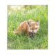 This adorable red fox cub (kit) sits in tall grass outside its den.