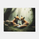 Amazingly beautiful wildlife image of two partner red fix in a mystic morning forest filled with vines and mushrooms