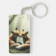 Fox Cuddle in Misty Forest Personalised Key Ring