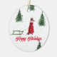 Fox dashing through the snow winter illustration ceramic tree decoration