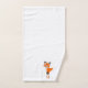 Bath towel set, consisting of a face cloth, hand towel and bath towel with a fox design. You can customise this bath towel set with any text of your choice. Should you require any help with customising then contact us through the message link on this page. Fox design bathroom towel set