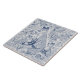 A mother fox and two kits enjoy a woodland setting with stylised flowers and leaves - and a little snail - on this whimsical decorative tile in denim blue and light grey. An adaptation of one of my popular blue and white tile designs. Unique, original artwork & design by Tuzi Williams.
