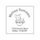 Adorable little fox with big ears and bushy tail is sitting in a teacup decorated with flowers. Customisable name and address.