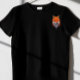 your majestic geometric fox t-shirt design, featuring deep black and grey tones, an simple background, and black eyes for a powerful and simple look.