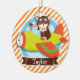 Cool, colourful kid's Fox Pilot in Green & Orange Aeroplane on orange & white stripes pattern. Perfect gift for baby, toddler, kids, children, teens, or adults! Personalised the design by adding a child's name or custom text. Visit our store, Birthday Party House, for more great customisable boy and girl products!