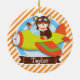 Fox Pilot in Green & Orange Aeroplane Ceramic Tree Decoration