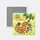 Fox Red Labrador and Green Citrus Colours magnet for Labrador Fans! Colourful and cute Fox Red Labrador Retriever cartoon design with flowers. Adorable Fox Red Labrador puppy sitting in the garden with flowers and green plants. Whimsy and funny Labrador Retriever Dog Cartoon created by Naomi Ochiai from Japan.