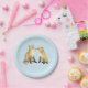 A watercolor painting of two red fox kits in the spring adorns these paper plates!