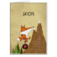 A cute fox with a smile on his face pedals up a tall mountainside on a unicycle. Pine trees are seen in the background as birds fly in the air. The mountainside has words of encouragement and a reminder that you are more than a conqueror. Original design by Christie Black of Creations from the Heart.