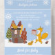 Winter children's birthday invitations with illustrations of a fox with a delicious, sweet cake for his friends, a house in the woods and snowflakes, will create a festive mood for both children and adults. Invitations are suitable for both boys and girls. See other similar products from OliaArtPositiv.
