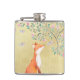 Fox with Butterflies and Pink Flowers Hip Flask