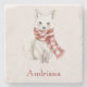 Fox with Peppermint Red White Scarf Stone Coaster
