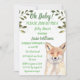 Oh Baby! Cute fox illustration baby girl or boy, gender neutral baby shower invitation. Baby shower. Rustic, fox watercolor painting by Monika Howarth. Nature, woodland animals, green illustration baby shower invitation. Personalise it with your details.