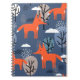 Foxes and trees, hand drawn backdrop. Colourful se Notebook