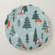Foxes, fir-trees, winter, colourful pattern round cushion