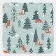 Foxes, fir-trees, winter, colourful pattern square sticker