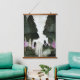The polyester fabric displayed many wrinkles and several sharp creases throughout. At the bottom of the tapestry, I noticed a bulge in the fabric because it was not pulled tight enough before being connected to the wooden boards. It took me over an hour to spay water on the tapestry before putting it on an ironing board where I used a warm iron over a polyester cloth to remove the wrinkles and creases in the material. I was able to get out the wrinkles and creases that made that tapestry look as beautiful as its picture.