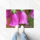 This custom doormat features an image of a pair of Foxglove blooms covered in raindrops. "Welcome" is added in a font colour that matches the flowers. The mat has a crushed felt front and a nonslip latex back, with a reinforced edge that resists fraying, and it cleans easily with a simple spray of water. Ideal for covered entryways. Feel free to contact me through Zazzle if you have questions about this doormat or would like help transferring this image to a different item. I'm happy to help to ensure the design fits correctly.