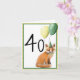 The realistic, beautifully painted red fox, centred in the middle of the card, with soft brushstrokes that make the fox look lifelike against a crisp, clean white background. The fox has a playful expression, with its ears perked up and a polka-dotted party hat perched on its head. Surrounding the fox are colourful balloons—soft yellow, and green—floating gracefully, adding a cheerful touch. The simplicity of the white background lets the artwork shine.
