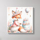 Meet the charming "Foxy Celebration," a delightful design featuring an adorable fox dressed in pastel party attire, complete with a floral hat and a beautifully decorated cake. This whimsical scene captures the joy and sweetness of a special occasion, making it the perfect design for birthdays, nurseries, or any space that needs a touch of magic and charm. Let this enchanting fox bring a smile to your face and warmth to your heart.