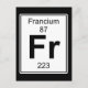 The element Fr - Francium from the periodic table. Great to use as just a single element, but even better to combine multiple products to create words. Be it with shirts as a team or with stickers/decorative items at home. Background colour can be changed. Most products also allow you to turn on/off the white fill in the design, allowing you to e.g. put in a background photo of e.g. the birthday boy. Be creative. Our designs are meant to be 'tinkered' with and are as such build with customisation in mind.