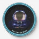 A blue and purple fractal image resembling an astronaut's helmet and shoulders on a starry background. Add your own text.