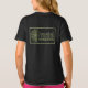 On the front a brown and green fractal leaf/needle pattern camouflage suitable for either coniferous or deciduous forests. Add your own text. On the back is the logo of mythical Fractal Camouflage Systems developer of this and other camouflage patterns.
