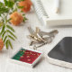 Layers of fractals make up this stylised Christmas design. A muted red backdrop, a spiky green tree, gold stars and snowflakes hanging from a strand of red and gold beads, and three red balls with a twirling gold design hanging in front.