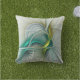 Fractal Evolution, Golden Turquoise Abstract Art Cushion
